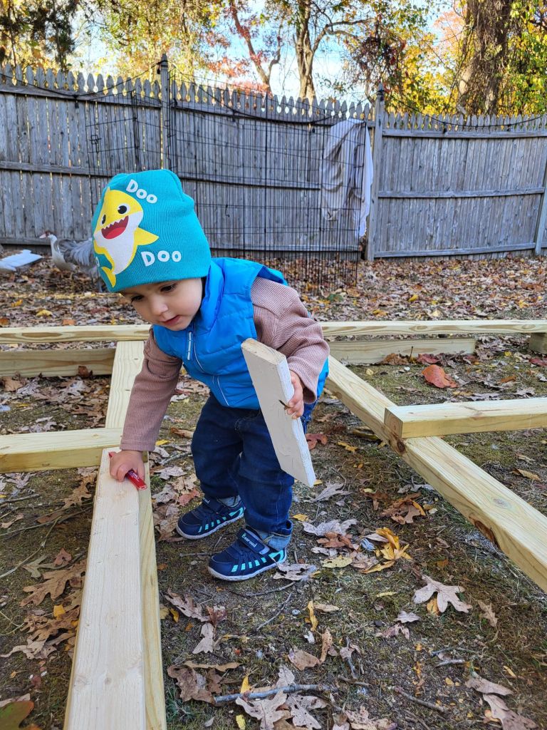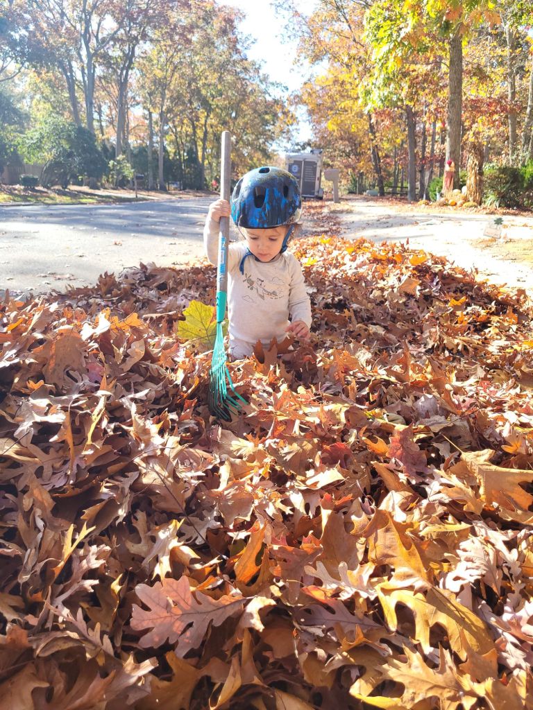 - Yard work- gardening, leaves, watering, you name it! He loves to help with harvesting potatoes and carrots, watering plants, filling the duck’s pool with water, turning the compost pile, raking leaves, picking up sticks, pretty much anything you can think of. I like to give him jobs that are easy enough for his age, but also challenging enough to keep him engaged, help him learn, and work on his motor skills. He often needs redirecting, especially with the hose, but again, he’s learning and only a year old.